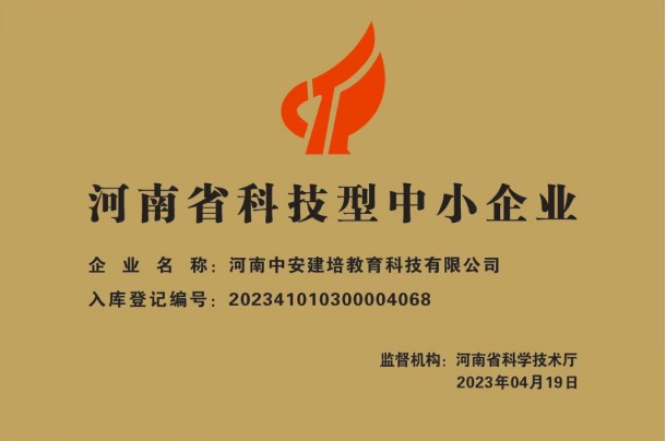 近日,河南省科學(xué)技術(shù)廳發(fā)布關(guān)于“河南省2023年第三批入庫科技型中小企業(yè)名單公告”。通過審核、公示等環(huán)節(jié),河南中安建培教育科技有限公司(簡稱“河南中安建培”)獲評“河南省科技型中小企業(yè)”稱號...